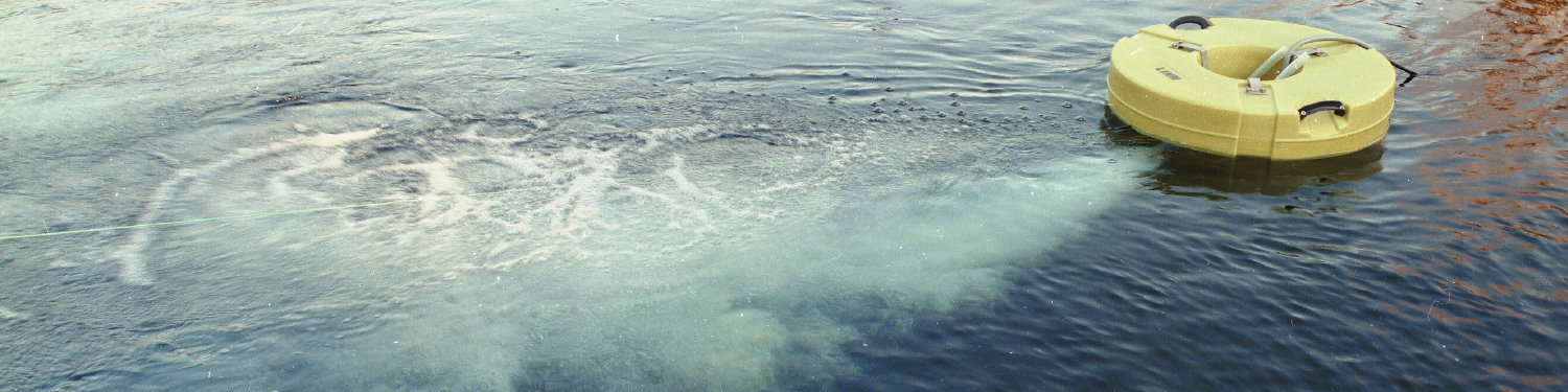 Turbo-Jet operates silently below the water surface, its directly driven propeller produces an enormous water circulation with relatively low energy-consumption. The special action of the high-speed motorised impeller draws in air, breaking it into thousands of small bubbles. The special water/air bubble jet is directed down into the water at an angle and mixes the whole volume and prevents the formation of dead spots.