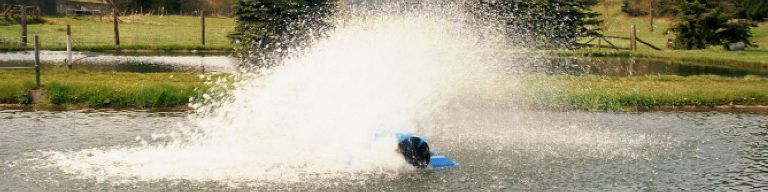 The angle of expulsion has been chosen so that waves move outwards from the aerator, distributing the aerated water throughout the pond. Stagnant, oxygen poor zones are thus avoided.